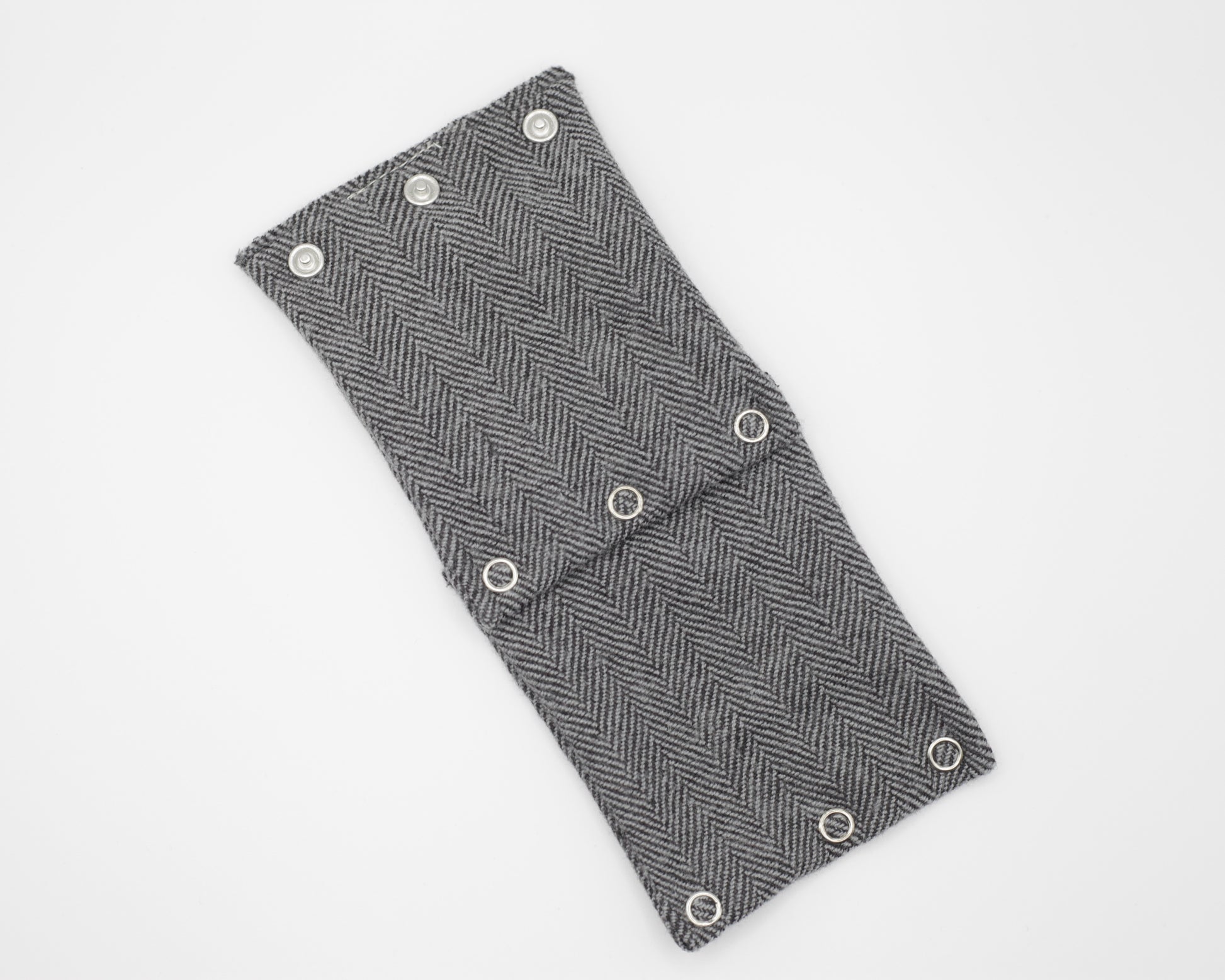 Die Qualitätsdruckknöpfe von YKK aus Messing sind nickelfrei. Der Wollstoff wurde in Österreich gewebt.