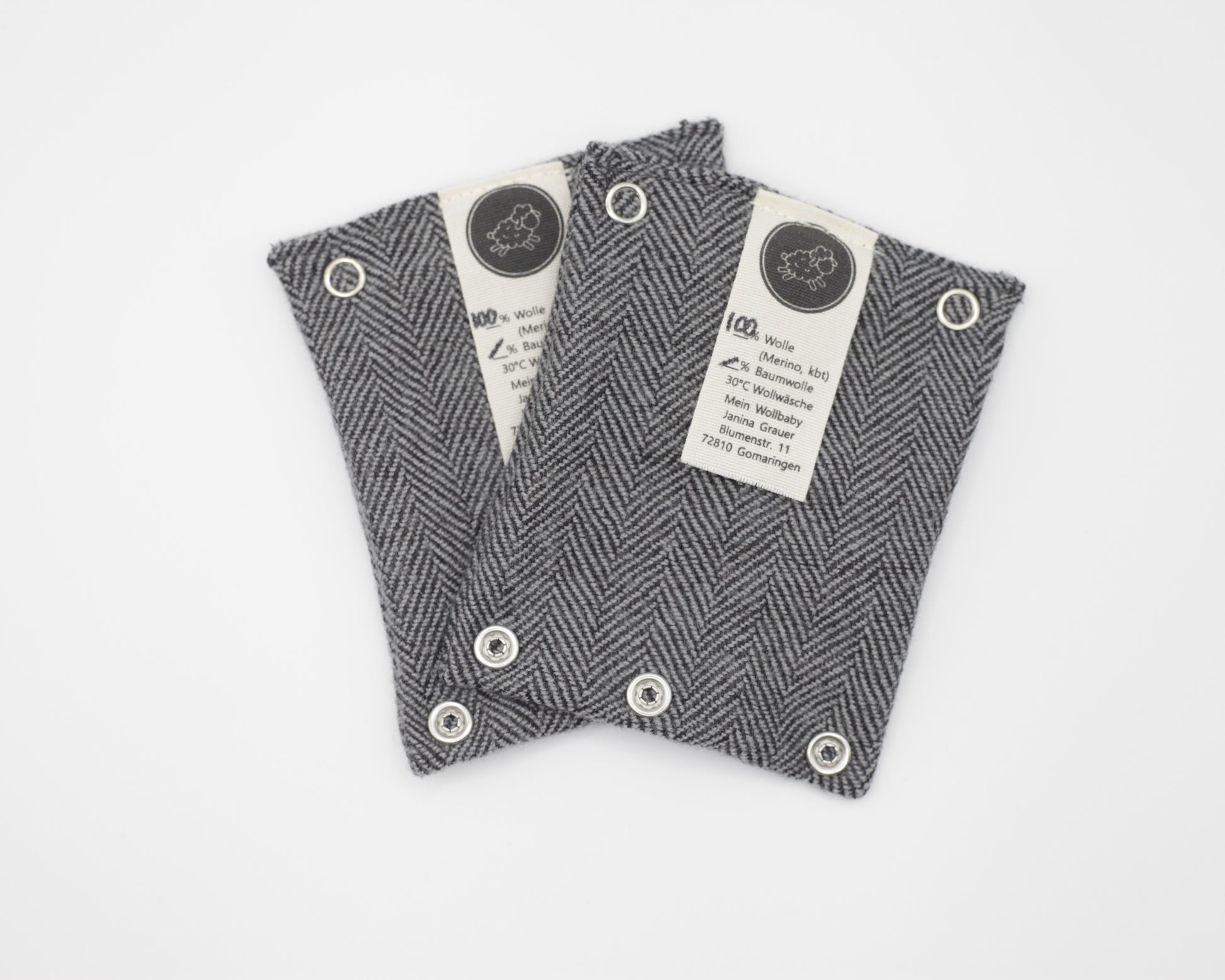 Deine Bodys sind zu kurz für Stoffwindeln? Hiermit kannst du sie um ca. 7 bis 14 cm verlängern. Sie sind aus reiner mulesingfreier Merinowolle (kontrolliert biologische Tierhaltung - kbT) und passen dank der gleichen Eigenschaften perfekt zu Bodys aus Wolle oder Wolle-Seide. Einfaches Auslüften statt häufigem Waschen reicht im Normalfall aus.